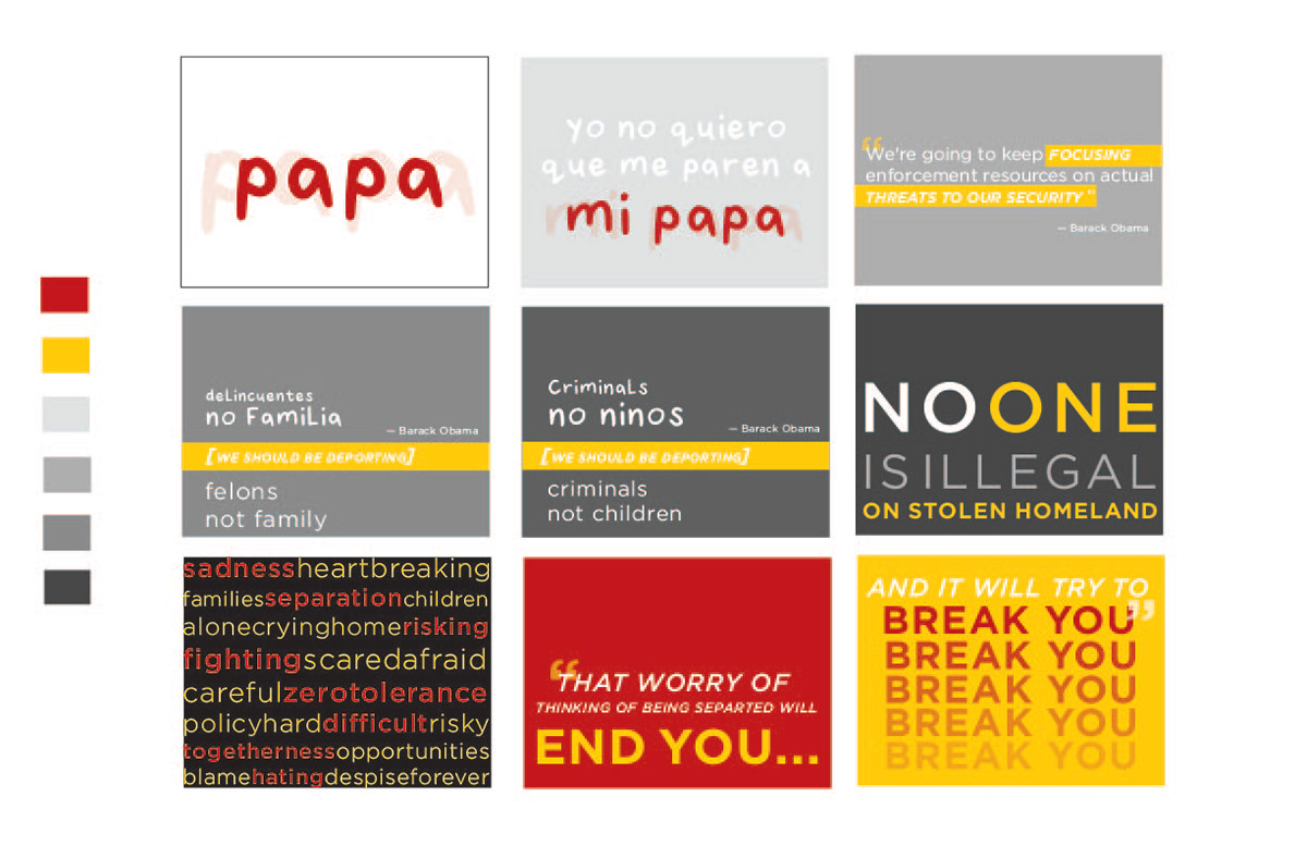 This project consists of typography and how it can be handled with background music as well as shapes. The topic that was chosen was Immigration because there are many situations that people do not understand. For example, understand that by children being taken away from their parents are left alone, and the majority of the time we do not know what happens to them. Children are being separated and some have no idea what has happened to their parents. The typefaces used were Kids Corner and Gotham. Kids Corner was used to represent the children and their voice while Gotham was used to show action, something needs to be done to stop this.