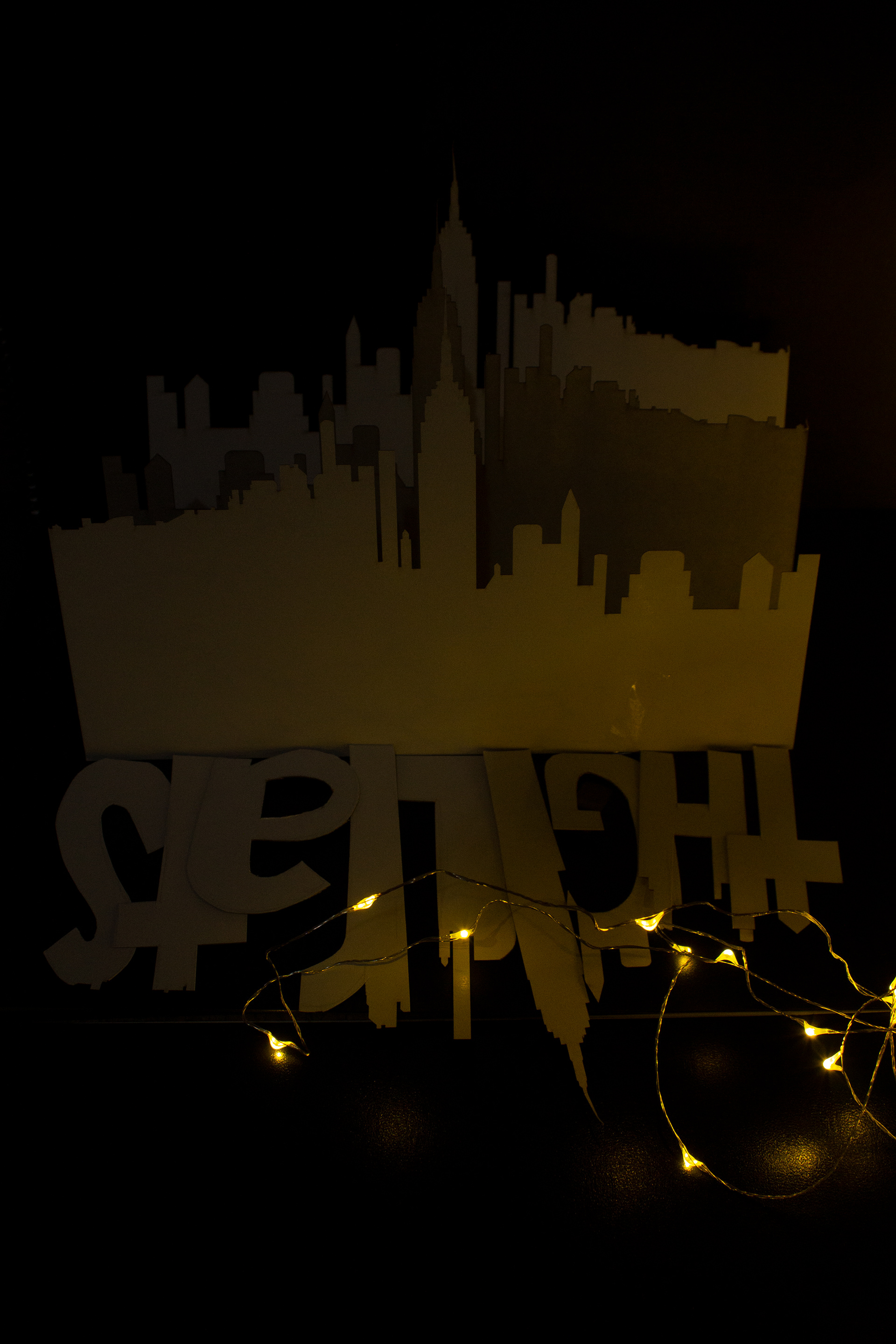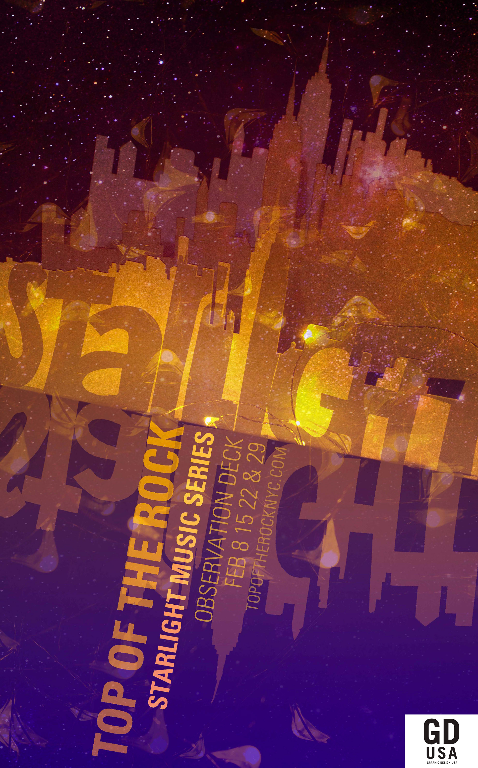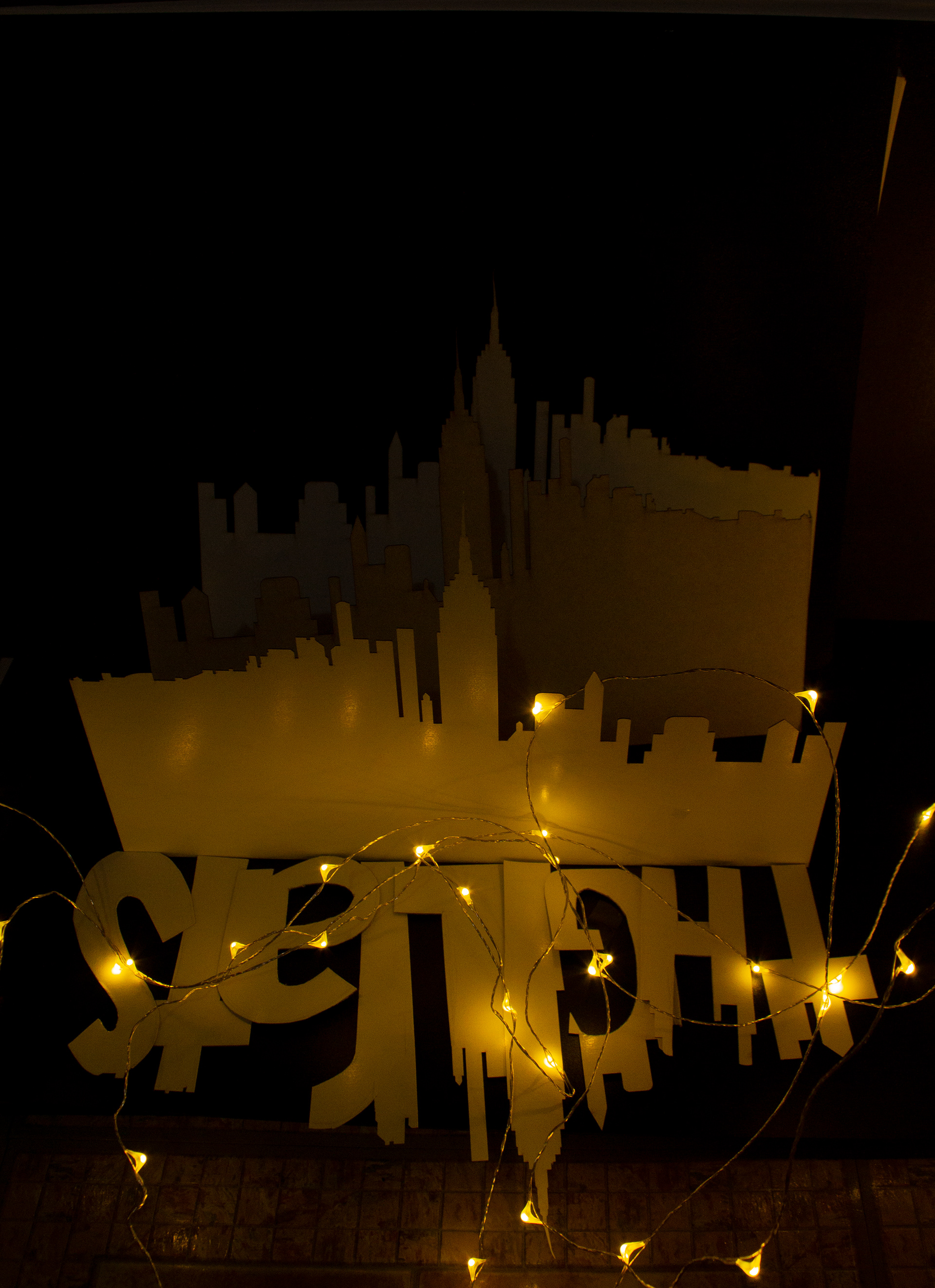 This project was focused on creating a poster for The Starlight Music Series. The idea of creating the poster was to hand cut the word “Starlight” with chipboard and have it reflect through the building of New York. The building were laser cut to have more of a representation of the city. Besides chipboard there was also the use there was also the firefly lights to create that light glow effect. Lastly the colors were chosen to show the liveliness of the event.